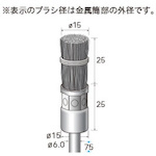 線径(mm):0.3 | 毛材:亜鉛メッキ | 外径(mm):15 | 毛丈(mm):25 | 軸径(mm):6 | 最高使用回転数(rpm):300…