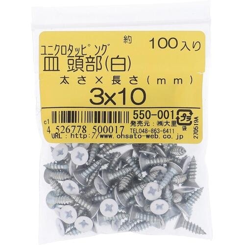OHSATO OHSATO ユニクロカラータッピング サラ シロ3X10(100) 550001 1袋(100本) A07T-6141
