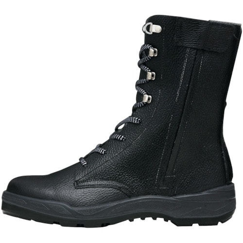 ハードな現場に対応する編上ロングブーツの外側にサイドファスナーを装着しました。ラクに着脱でき、マジックテープでファスナー引き手も隠せます。 |