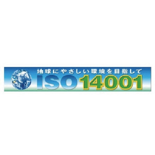 表示内容:地球にやさしい環境を目指して ISO14001 | 寸法(m):1.8×10.8(ヨコ2枚つなぎ) | その他仕様:建設現場用 | 材質・仕…