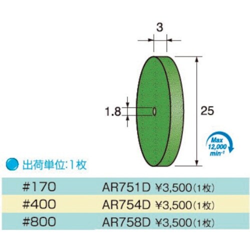 粒度(#):400 | その他仕様:φ25×3mm厚 | その他仕様:#400 | 単位:1枚
