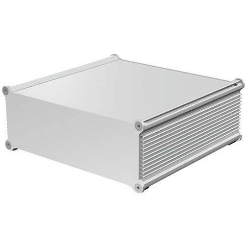 ヒートシンク形状のアルミ押出材を使用し、パネルはシルバーアルマイト仕上げで洗練されたデザインです。ボディーフレーム内部・パネル裏面が導通しており、シールド効果のあるケースです。