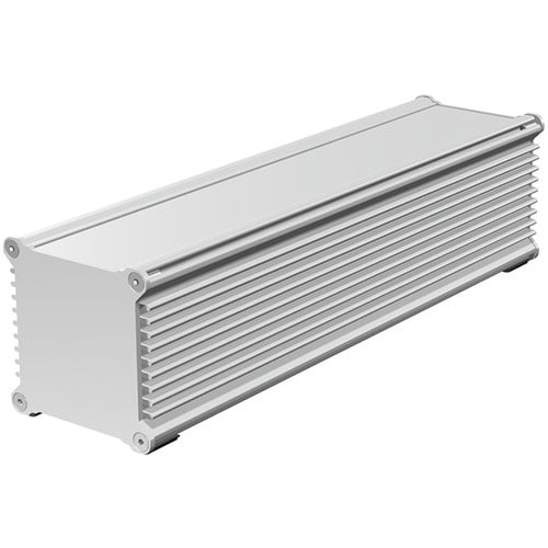 ヒートシンク形状のアルミ押出材を使用し、パネルはシルバーアルマイト仕上げで洗練されたデザインです。ボディーフレーム内部・パネル裏面が導通しており、シールド効果のあるケースです。