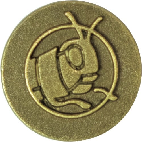 丸の中にバッタの絵柄が描かれたビスキャップです。屋内専用です。 |