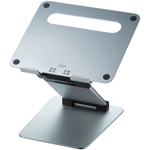 フリーで高さ・角度調整ができる、ノートパソコンスタンドです。タブレット機器の設置も可能です。POSレジに使用できるタブレットも設置できます。 |