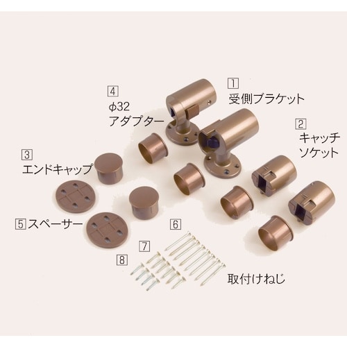 その他仕様:手すり棒の太さ35・32mm用部品 | 本体、キャッチソケット、スペーサー:アルミ合金  | アダプター、エンドキャップ:ABS樹脂 | …