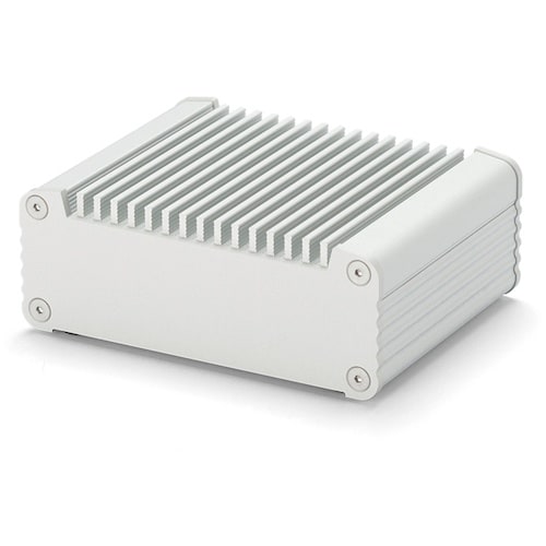 上面がヒートシンク形状で、効率良く放熱が出来る形状の熱対策アルミケースです。カバー内部を無処理とし、導電性ガスケットを使用する事でEMCシールド効果を持たせたケースです。 |