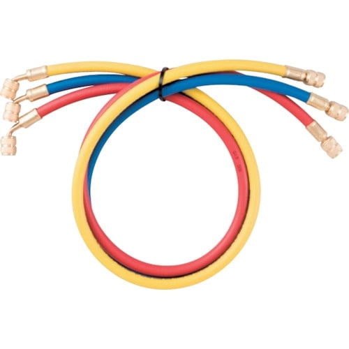 長さ(cm):150 | 常用圧力(MPa):5.5 | 破裂圧力(MPa):27.5 | セット内容:赤・青・黄 | その他仕様:R22・R12・R…