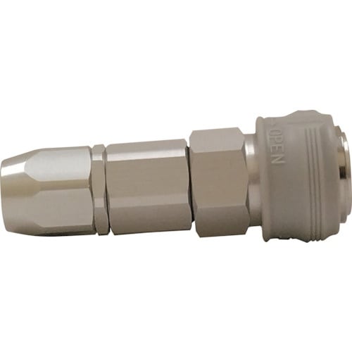 接続はプラグをソケットに押込むだけのワンタッチ操作です。ロック・ロータリ機能付きのため不意な分離の防止やホースのよじれを解消できます。