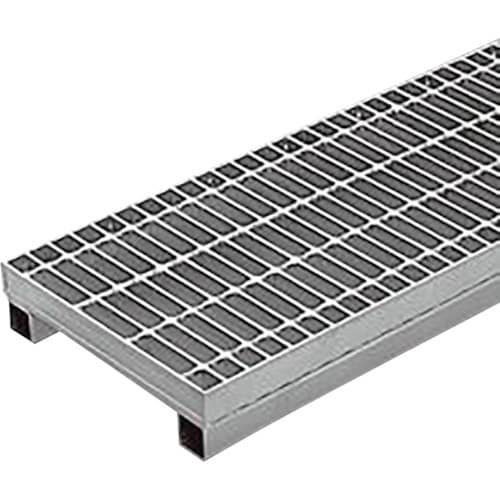 グレーチングの下面両側にスペーサを溶接した構造で、既設のコンクリート製みぞ蓋と簡単に交換できて同じレベルで施工できます。建物内、建物敷地内、公園敷地内及び敷地周辺道路(公共の車道を除く)に。 |