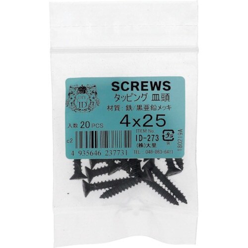 OHSATO OHSATO 亜鉛黒 タッピング 皿 4×25 ID273 1袋(1本) A07V-8895