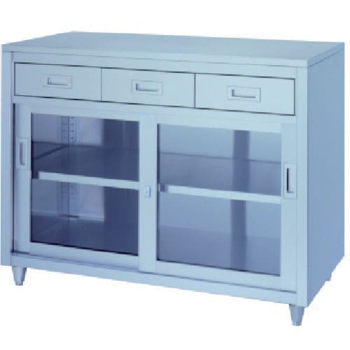シンコー ステンレス保管庫 一段式アジャスト付 LADG型 (引出・ガラス戸) 1200×600×950 LADG12060 1台