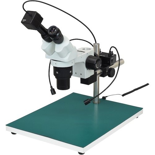 お手頃・対物レンズ切換式とカメラで確認・保存大きい観察対象に最適(スポット照明付)1×/2×切換式対物レンズの価格を抑えた実体顕微鏡と、価格と性能を両立した300万画素USBカメラのセットです。 |