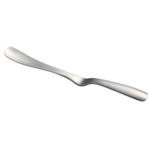 先端が浮くのでテーブルを汚さず、置き場に困りません。ジャムをスーッと塗れるヘラ形状です。ビンの底まですくってもテーブルを汚さない長さ設計です。高さ約9cmまでのビンに対応してます。 |