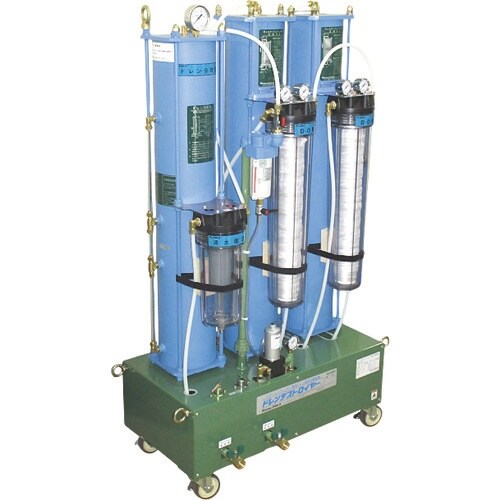 給油式エアコンプレッサーから排出されたドレンに含まれる油分を、5ppm以下の清水に処理します。水質汚濁防止法の排出基準をクリアしています。電気機器などを使用せず、非常にシンプルな構造です。 |