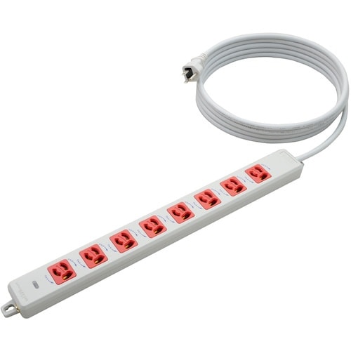 明工 横形OA用抜け止め接地タップ8コ口 ランプ、マグネット付 VCTF3m接地プラグ付(赤駒) MR7908TJ3WR 1個