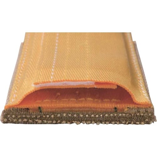 コイル吊りで開発された超重量物用ベルトタイプ(特許製品)の保護パッド鋭利なエッジ部分での擦り切れにも強いアラミド繊維補強ベルトにより、傷みやすい部分をしっかりガードする。 |