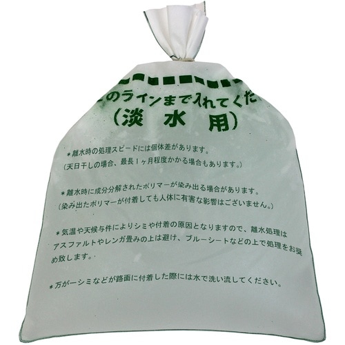 吸水前の保管場所を少なくてすみます。土砂、スコップが不要です。お水をいれるだけ。脱水処理後、一般ごみとして廃棄が可能です。台風時に。緊急用に。集中豪雨に。ゲリラ豪雨時に。 |