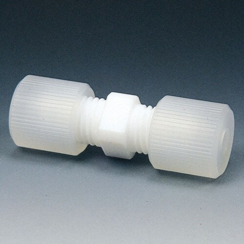 I型チューブ接続ジョイントです。Wフェルール式のジョイントでは、耐圧が常温で0.8Mpaまでもちます。機能上液がスムーズに流れるように流量抵抗が少ない設計となっています。 |