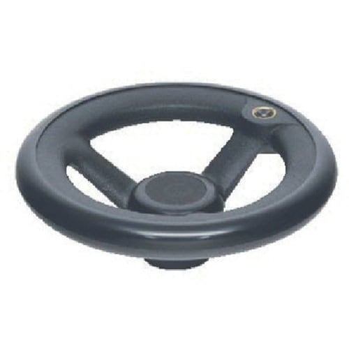 軽量で最もスタンダードな樹脂製ハンドル車です。軸穴・押しねじ穴2ヶ所(軸穴径:24mm)加工品です。 |