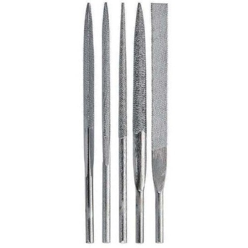 切削粉のはく離性に優れています。樹脂、アルミニウム、鉄系、ステンレスの研削用。荒目のヤスリ、平・半丸・丸・角・三角の5種類(各1本ずつ)をセットにしました。 |