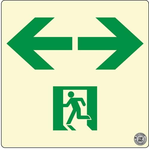 安全標識板JIS規格Z9107の高輝度基準をクリアした蓄光標識です。白色蛍光灯200ルクス20分間照射で約8時間視認可能です。両面テープ付きのため施工が簡単です。 |