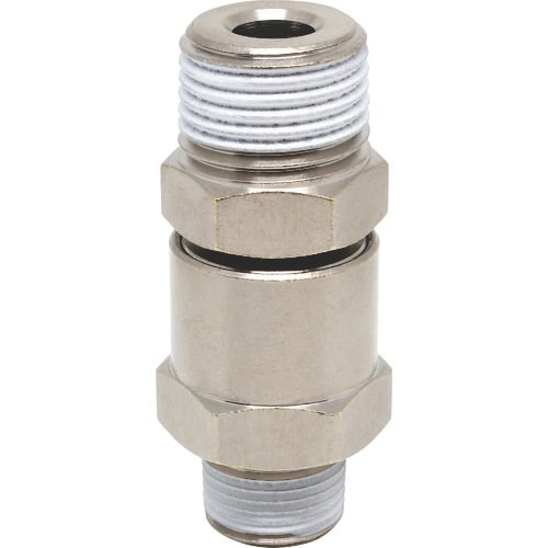 一般空気圧配管の高速回転部用ワンタッチ継手です。回転部にはベアリングを2個使用しています。動きの速い揺動部、高速回転部に最適です。