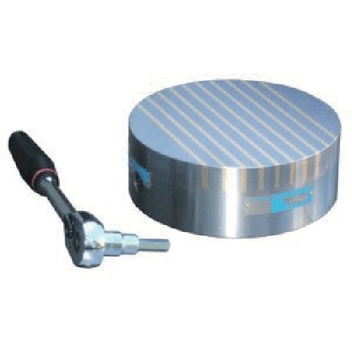 旋盤加工でのワークの位置決めに効果的な磁力調整機能付です。ON/OFF操作は操作性の良いラチェットハンドルを採用です。強力な吸着力により、各種切削用途に使用可能な永磁チャックです。 |
