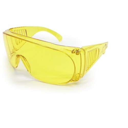 コントラスト(色の明暗)を高めることが出来るので、室内や曇りの日、薄暗くなってきた時間帯などに見えやすいイエローレンズです。広視野フレームのオーバーグラスタイプです。 |