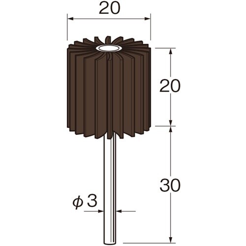 粒度(#):120 | 外径(mm):20 | 幅(mm):20 | 軸径(mm):3 | 軸長(mm):30 | 最高使用回転数(rpm):2000…