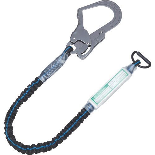第1種ショックアブソーバ付き伸縮式じゃばらランヤードです。構造物側は剣スチールフックを採用しています。体躯側 D環を採用しています。2m以上の高所作業者に。 |