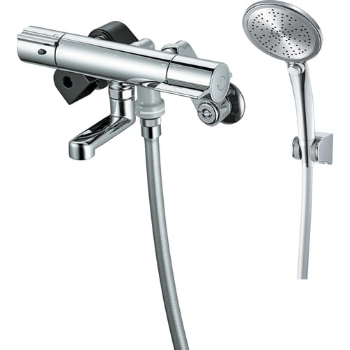[適温キープ]サーモカートリッジの働きで湯水の混合量を自動で調整し、常に一定の温度を保つことが出来ます。[クリック機構]切替ハンドルにクリック機構を採用。 |
