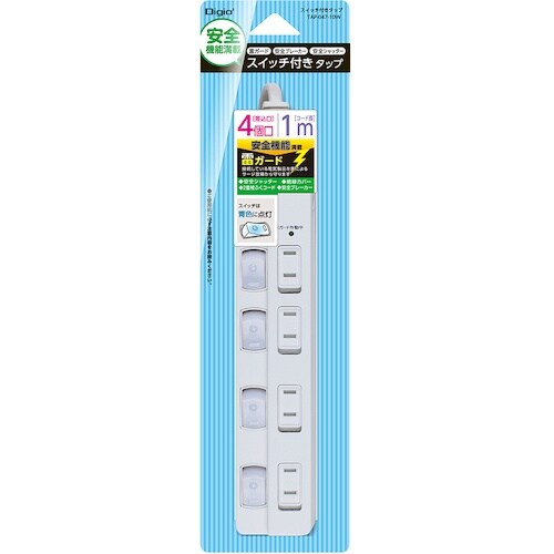ナカバヤシ ナカバヤシ OAタップ 安全機能満載スイッチ付OAタップ 4個口 1m ホワイト TAP04710W 1本 A07Y-3259