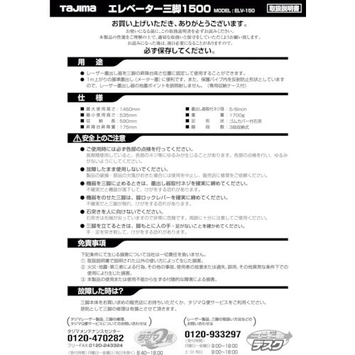 TJMデザイン タジマ 三脚部品049742 ELV−150取扱説明書 TP049742 1冊 A07Y-4904