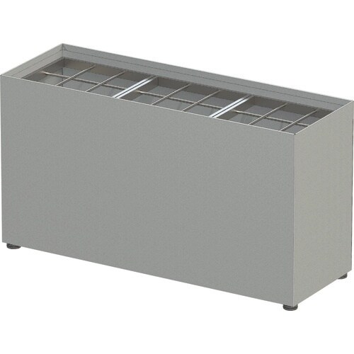 仕切の外れるボックス型のシンプルな傘立てです。仕切が外れるので水受皿の交換や内面のお手入れも簡単にできます。収納数の割にコンパクトな点が魅力です。小規模なオフィスや店舗の傘立てに。