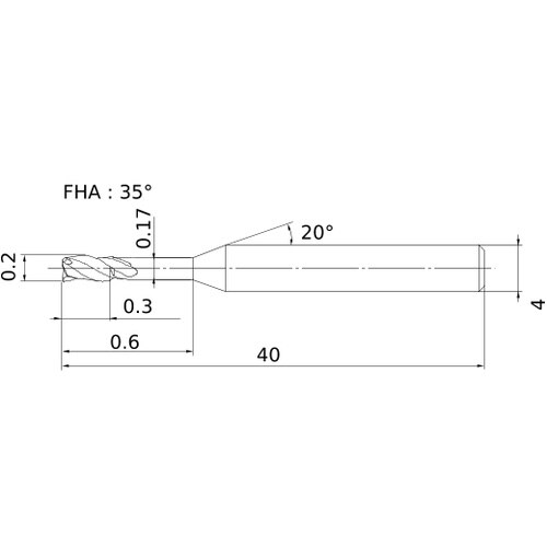 刃数ZEFP(枚):3 | 切削径DC(mm):0.2 | 最大切込みAPMX(mm):0.3 | 使用可能長さLU(mm):0.6 | 機能長さLF…