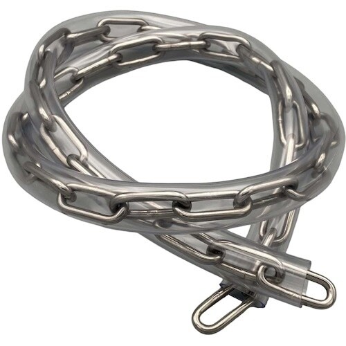 溶接チェーンは切断済み、保護チューブ付きです。オールステンレス製のため、防錆性・耐候性に優れています。転倒防止、進入禁止、境界用の仕切りに。