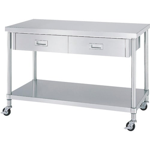 シンコー ステンレス(SUS430)作業台片面引出付ベタ板棚キャスター付 φ100ナイロン車 600×600×800 WDBC6060N100 1台