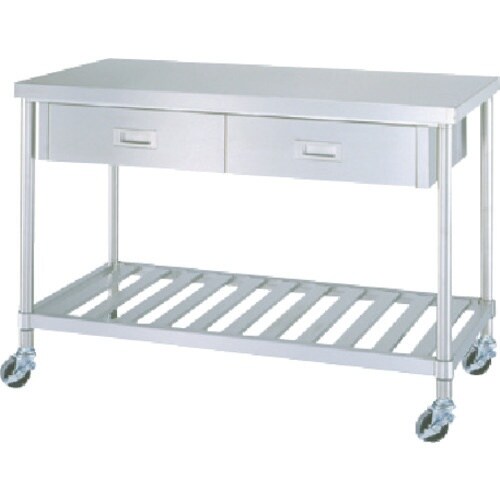 シンコー ステンレス(SUS430)作業台片面引出付スノコ板棚キャスター付 φ75ウレタン車 1800×600×800 WDSC18060U75 1台