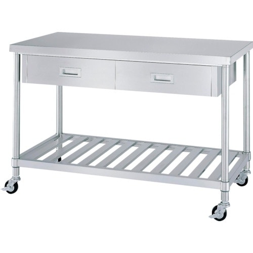 シンコー ステンレス(SUS304)作業台片面引出付スノコ板棚キャスター付 φ75ウレタン車 ステンレス金具 600×450×800 WDSNC6045800SU75 1台