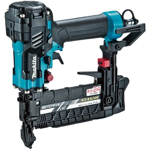 高圧専用設計ならではの確かな打込み力。釘打ちしやすい先端形状。壁際の張りじまいでもしっかり打てる。・小さなボディで抜群の取り回し。・「座屈防止ガイド」付50mmの長いステープルでも、座屈させずに打込み |