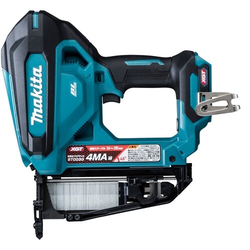 ※写真のバッテリは別販売品です。[フライホイール式]でハイパワー&低反動、堅いフロア材にもパワフルにステープルを打ち込む |