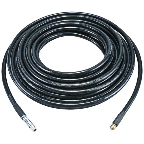ホース先端から高圧水が逆噴射し、パイプの中を進みながら洗浄 |