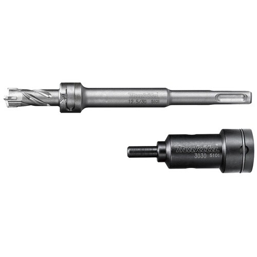定寸ビット+打込アダプタ。ツライチの定寸穴あけとアンカー打ち込みがこれ一本で。 |