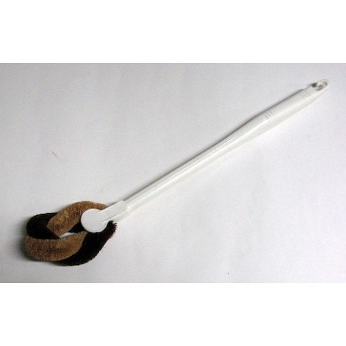 トイレクリーナーです。二つの細型たわしをツイストさせてあるのでコシが強く便器のワク裏など、スミまでしっかり洗えます。天然植物繊維なので洗浄液を程よく含み汚れを落とし易くします。 |