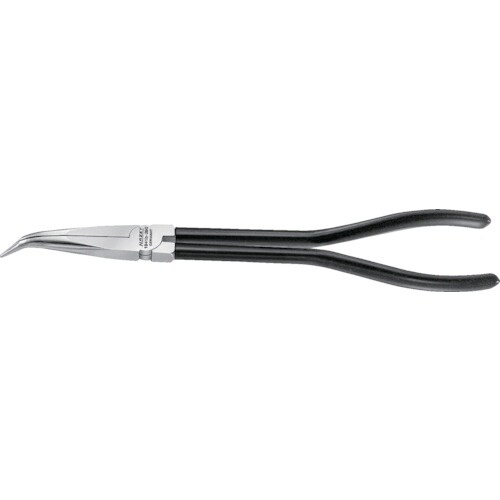 狭く奥まった所の掴み作業、コネクター作業に最適です。ヘッドは先端にゆくほど細くな形状で45°曲がっています。ハンドルはディップコーティングされています。一般機械メインテナンス。 |