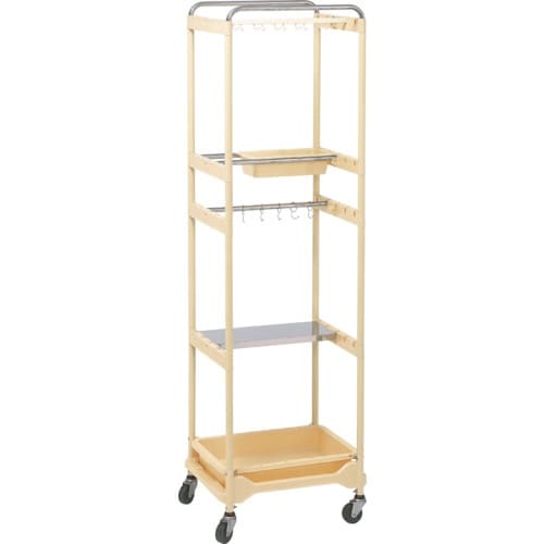 清掃用具の管理と整理整頓に最適なラック式カートです。下のトレイや各パーツは取り外して簡単に清掃できます。清掃用具管理カートに。