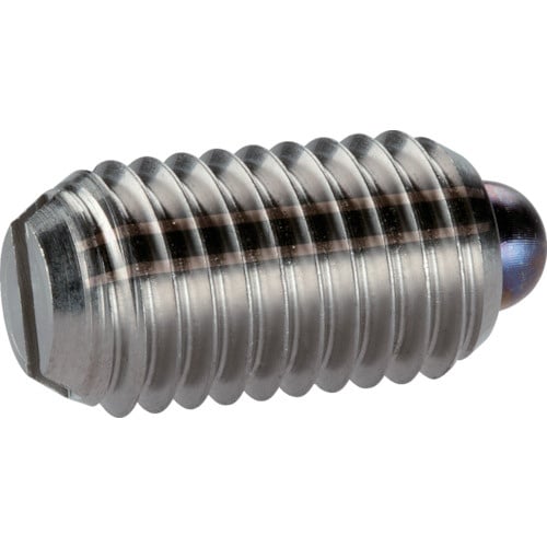 ねじ込み、スラストピンタイプのプランジャーです。位置決め、固定、押し付け、押し離しなどに。