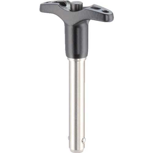 T形グリップ、セルフロッキング機能付です。ボール・ロック・ピンです。強度が高く、耐食性、耐摩耗性に優れています。ボタンを押すことにより、ボールのロックが解除されます。インチ寸法の物も製作できます。 |