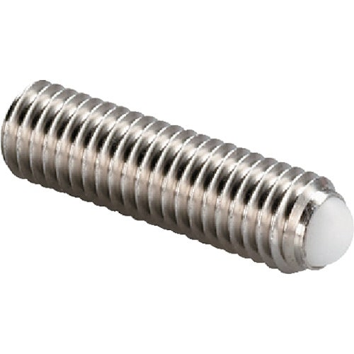 ヘッド無し、完全ボール付セッティングスクリューです。ワークに対して垂直でない場合でも固定、締め付け、サポートなどに。プラスティック球なので、圧力で傷つきやすい部品への使用に。 |